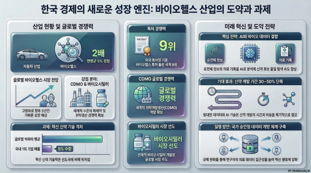 한국은행 연구원은 “바이오헬스가 한국 경제의 차세대 엔진이 될 잠재력은 충분하지만 연구개발 투자와 데이터 인프라 등 혁신 생태계 전반을 강화하지 않으면 글로벌 경쟁에서 뒤처질 수 있다”고 강조했다.