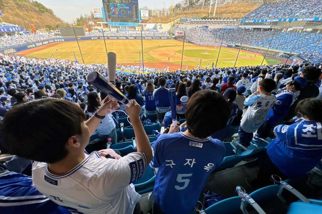 최근 대구 삼성라이온즈파크에서 열린 프로야구 삼성 라이온즈와 LG 트윈스의 시범경기에서 관중석이 팬들로 가득 차 있는 모습 [사진=연합뉴스]
