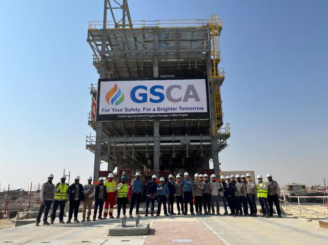 GS건설 직원들이 사우디아라비아 파딜리 가스 증설 프로그램에서 기념사진을 촬영하고 있다. [사진=GS건설]
